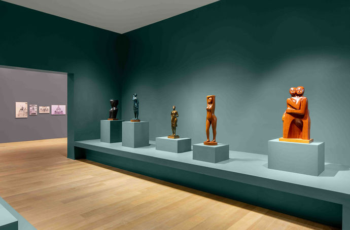 Catlett’s ouevre is canonical yet remains a discovery for many. On view in the exhibition, the artist’s signature figurative works in various mediums, including wood-block prints, wood carvings, and bronze sculptures, depict experiences of Black Americans and Indigenous Mexican people in the 20th century with clarity and precision. At the same time, the works celebrate womanhood and the strength of women of color in public roles such as maker, laborer, educator, and civil rights activist, as well as in the domestic space and familial roles of nurturer, mother, daughter, sister, and confidant. In these portrayals, Catlett reclaims the representation of her subjects in visual culture and fearlessly speaks truth to power. The conceptual framework of the presentation builds on previous scholarship in which the complexities of Catlett’s identity have unfolded and illuminates how her work meditates on these themes as realms of political resistance.